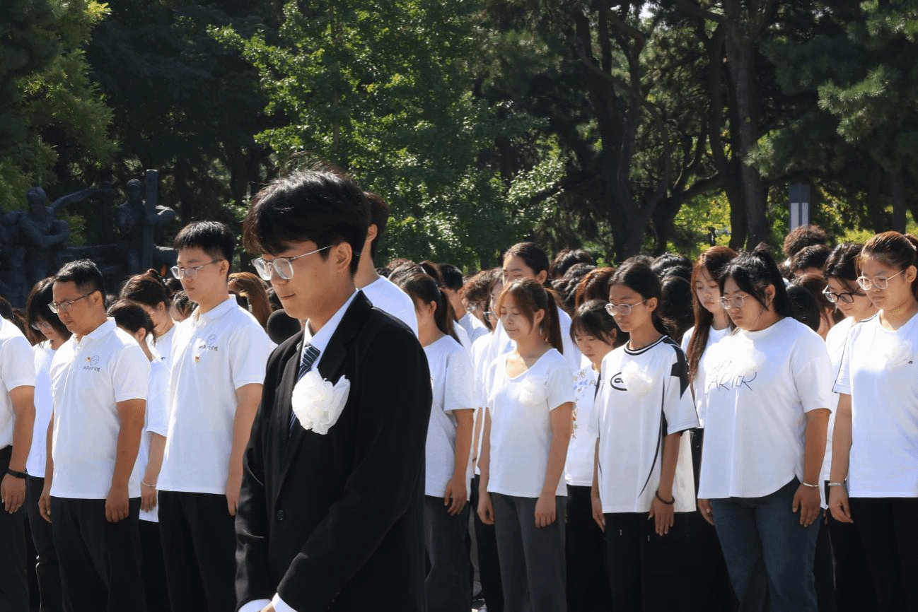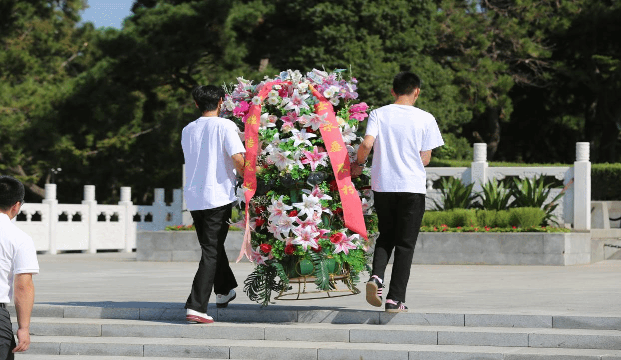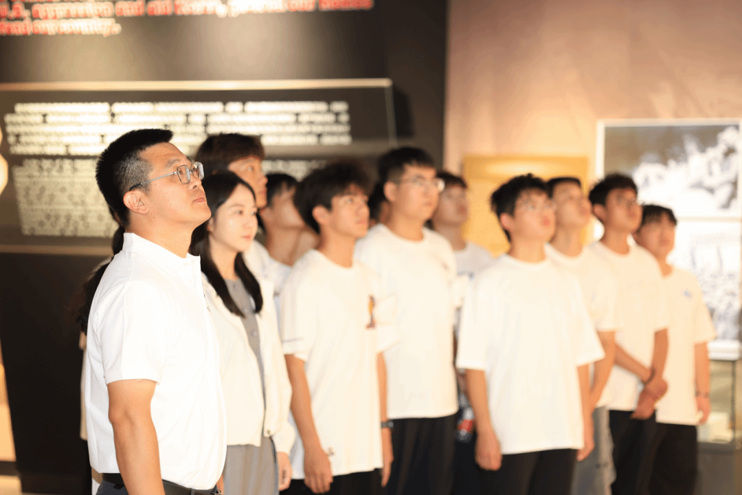 在庄严肃穆的纪念馆内,师生整齐列队,齐声高唱中华人民共和国国歌。随后,全体肃立默哀一分钟,深切缅怀为国家和民族英勇献身的革命先烈。薛鹏飞郑重向烈士纪念碑敬献花篮,新生代表现场发言,表达了继承革命遗志、坚定理想信念、刻苦学习钻研、矢志报效祖国的坚定决心。