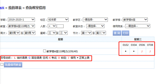 查询结果显示教室的所有状态,如果发现都被占用的话再另觅符合条件的教室,或者查询时直接教室状态选择空闲的教室。