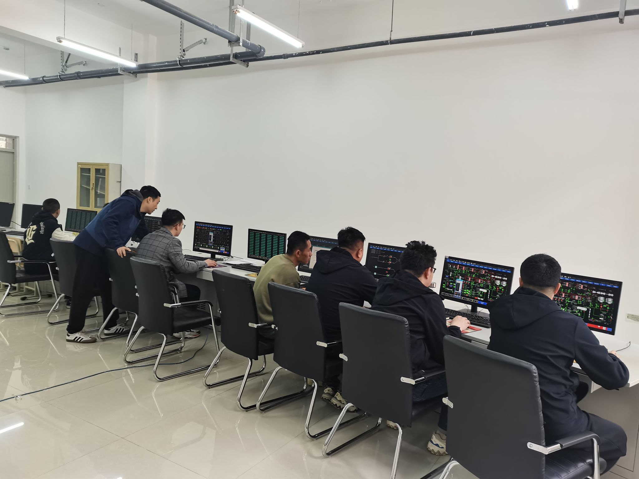 2024年3月19日到4月23日期间,内蒙古华厦朱家坪电力有限公司25名学员到能动学院仿真中心进行660MW超超临界火电机组集控值班员技能培训,分三期进行,日前一期学员已经培训结束,目前正在进行二期学员的培训,我中心安排仿真培训经验丰富的孙力老师对该批电厂学员进行培训,通过仿真培训及教学,使其熟悉了发电机组操作流程,提高了火电值班员的实际操作能力,为发电机组的安全经济运行提供了有力保障。科学的培训方案和专业过硬的教学队伍得到了培训学员的高度认可,保证了良好的培训效果。能动学院仿真中心作为我校的对外开放窗口,本次培训任务提高了我校对外培训