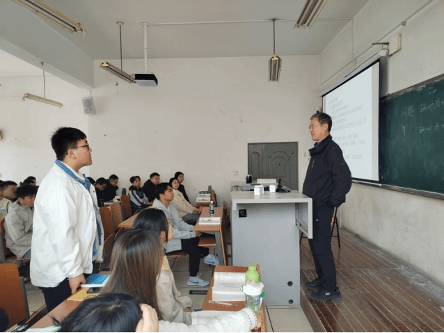 提问互动环节,董建勋教授对学生的踊跃提问耐心解答,并对同学们提出“打铁还需自身硬”的殷切希望,指出只有同学们牢牢掌握专业知识,不断提升自身能力,方能在求学或就业路上更好前行。