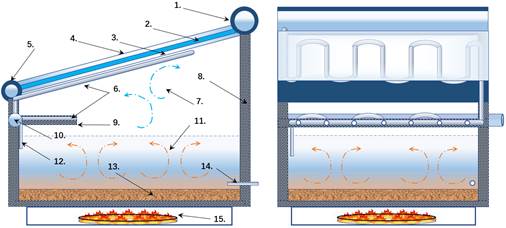 可再生能源利用技术被广泛认为是引领全球能源向绿色低碳转型的重要驱动,受到各主要国家的高度重视。本项目将太阳能和氢能两种可再生能源巧妙结合。一方面,太阳能被蒸发冷凝一体舱直接利用;一方面间歇性太阳能经光伏面板转化为电能后储存在蓄电池中,为布朗气发生装置提供电源,实现太阳能向氢能的绿色转换。电解产生的布朗气绿氢复合气体在燃烧室内点燃,为蒸发冷凝一体舱中的海水淡化提供蒸发热源。本系统能够实现全天(24小时)的盐水淡化,并且极大提高了盐水淡化效率,系统结构简单无人值守即可连续运行,突破了传统太阳能蒸馏淡化系统夜间无法进行盐水淡化的固有瓶颈,为解决偏远地区卤水和海水无人值守淡化问题提供了一种更加环保、高效的技术手段。